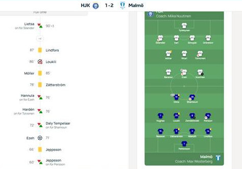 - Toinen kamppailu päättyi 1–1–tasalukemiin. HJK:n historian ensimmäisen maalin Youth Leaguessa viimeisteli Antti Ulmanen.