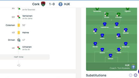 19.10.2016, Cork–HJK 1–0 (0–0)